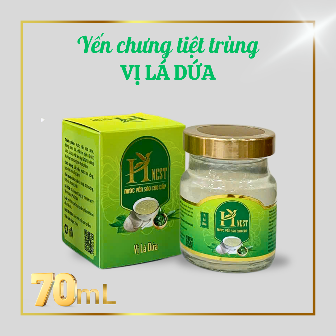 Nước yến sào HNEST - LÁ DỨA với 1gam yến sào khô nguyên chất đã được làm sạch kỹ lưỡng tại Xưởng yến sào Hoàng Phi, kết hợp cùng đường phèn và công nghệ tiệt trùng tiên tiến, tạo nên một sản phẩm vừa giữ được hương vị yến sào truyền thống, vừa có vị thơm thanh mát, dịu ngọt từ hương thơm của lá dứa. Với sự kết hợp quen thuộc này, Nước yến sào HNEST - LÁ DỨA sẽ là một trong những điểm đặc biệt trong chuỗi các sản phẩm Yến chưng sẵn từ yến sào nguyên chất, hứa hẹn làm hài lòng hầu hết mọi thực khách, mọi lứa tuổi.